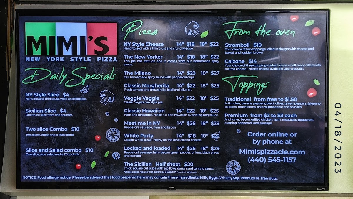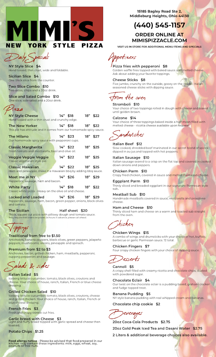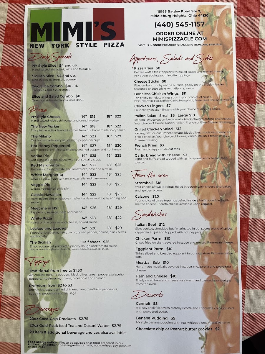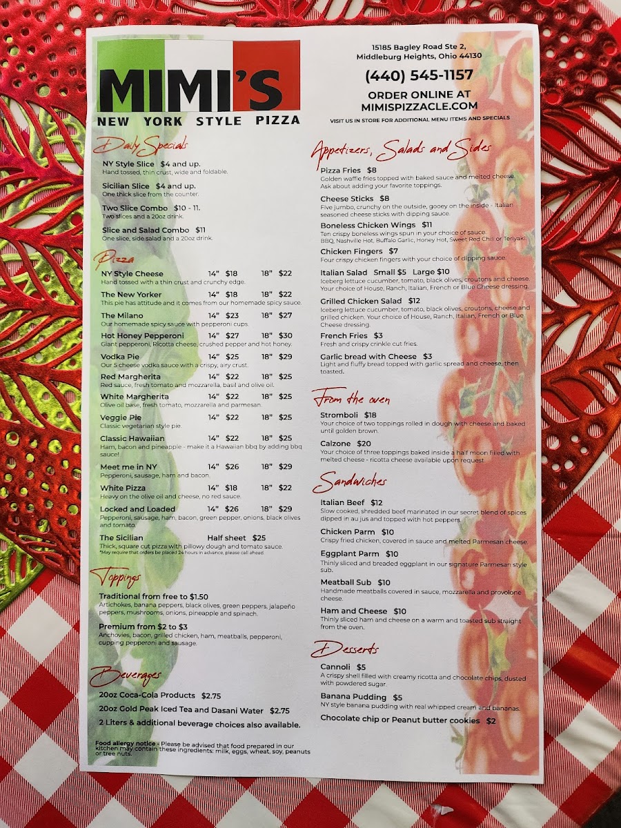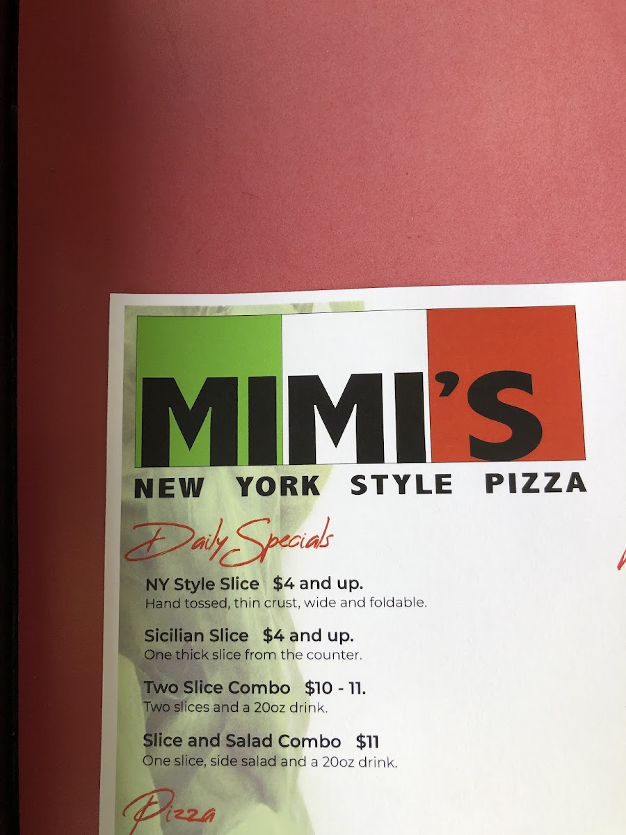 Mimi's Pizza Menu