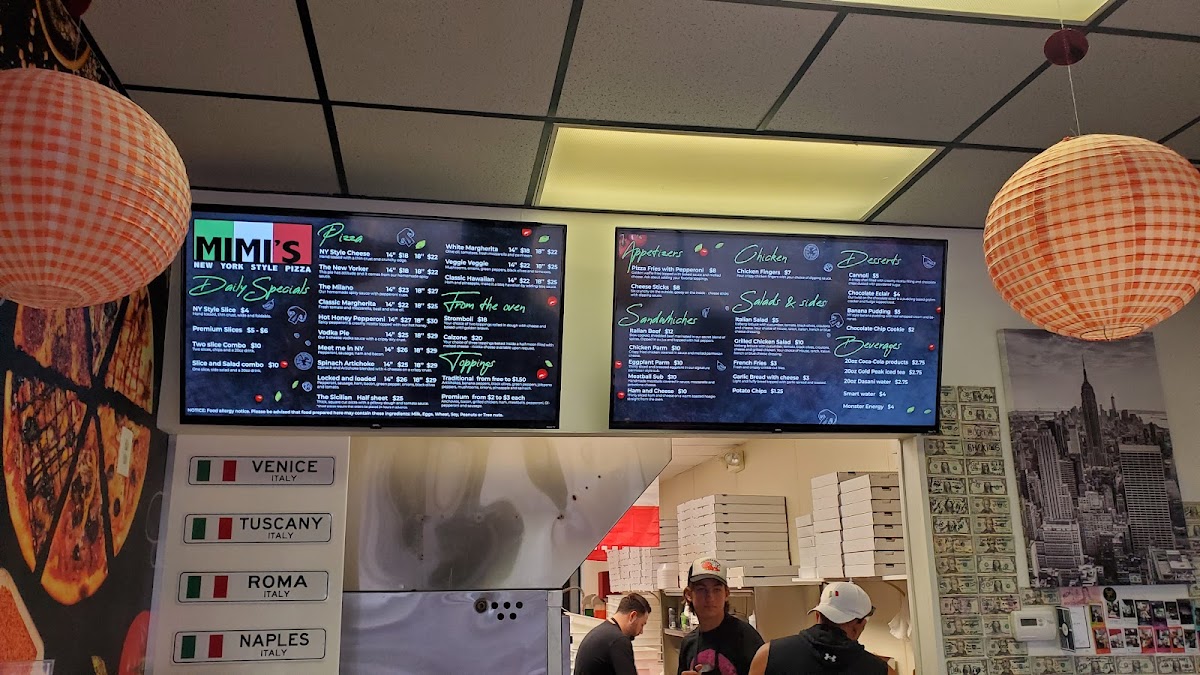 Mimi’s Pizza offers a straightforward menu centered around classic New York-style pizza in a casual, welcoming setting. Whether you’re stopping by for a quick slice or sitting down for a larger pie, the menu provides comforting, familiar options that fit both an easy lunch or a relaxed dinner.
